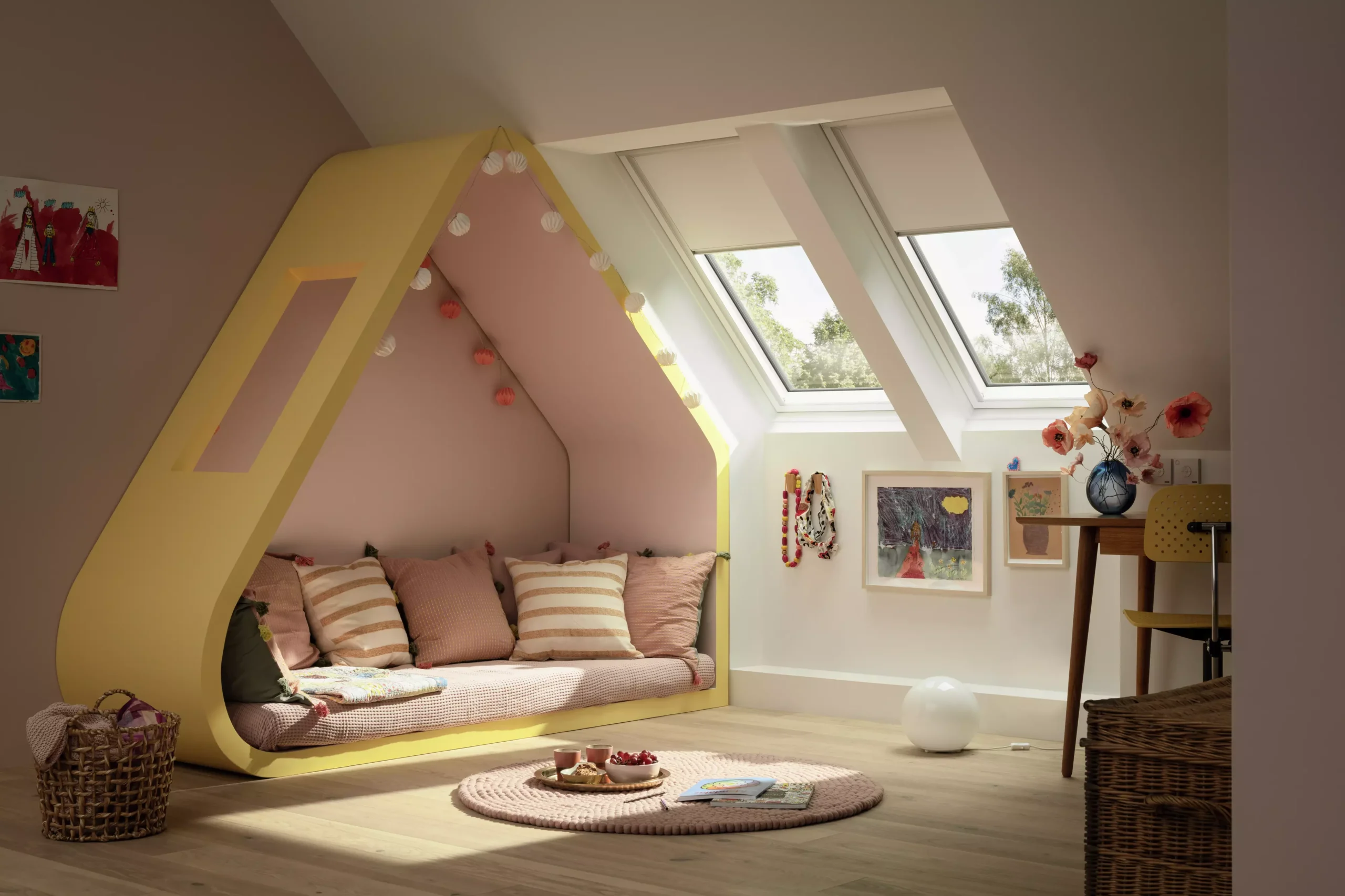 Het VELUX verduisterend rolgordijn houdt al het licht buiten en biedt een totale verduistering. Het is ideaal voor slaapkamers, waar je volledige controle over het licht nodig hebt voor een goede nachtrust of een verkwikkend middagdutje. Het verduisterende rolgordijn past perfect bij jouw VELUX dakramen en zijn leverbaar in een breed assortiment kleuren die je interieur als geen ander complementeren.
